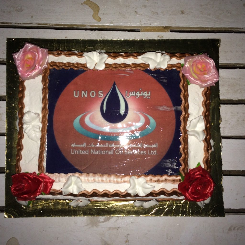 On the 3rd of October 2014, the UNOS company of Iraq celebrated 1 full year of In-To-Plane Fuel Operations at Najaf Al Ashraf International Airport, Iraq. To commemorate the event a party was held at the UNOS Accommodation and Recreation Facility on the airport. The pictures below show the event and a wonderful cake that was baked specially for the occasion.
